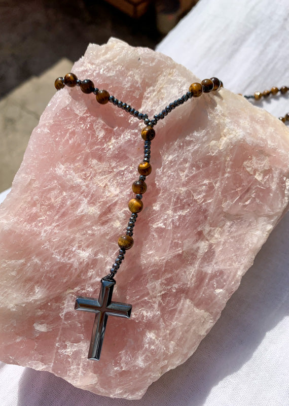 Collar Ojo de Tigre y Cruz de Hematita 🐅✝️