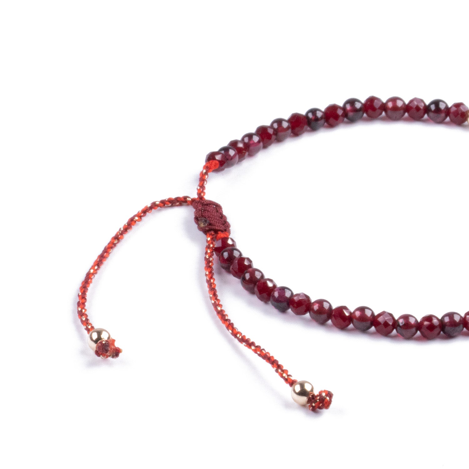 Pulsera Minimalista hecha con hilo y piedras naturales de granate.